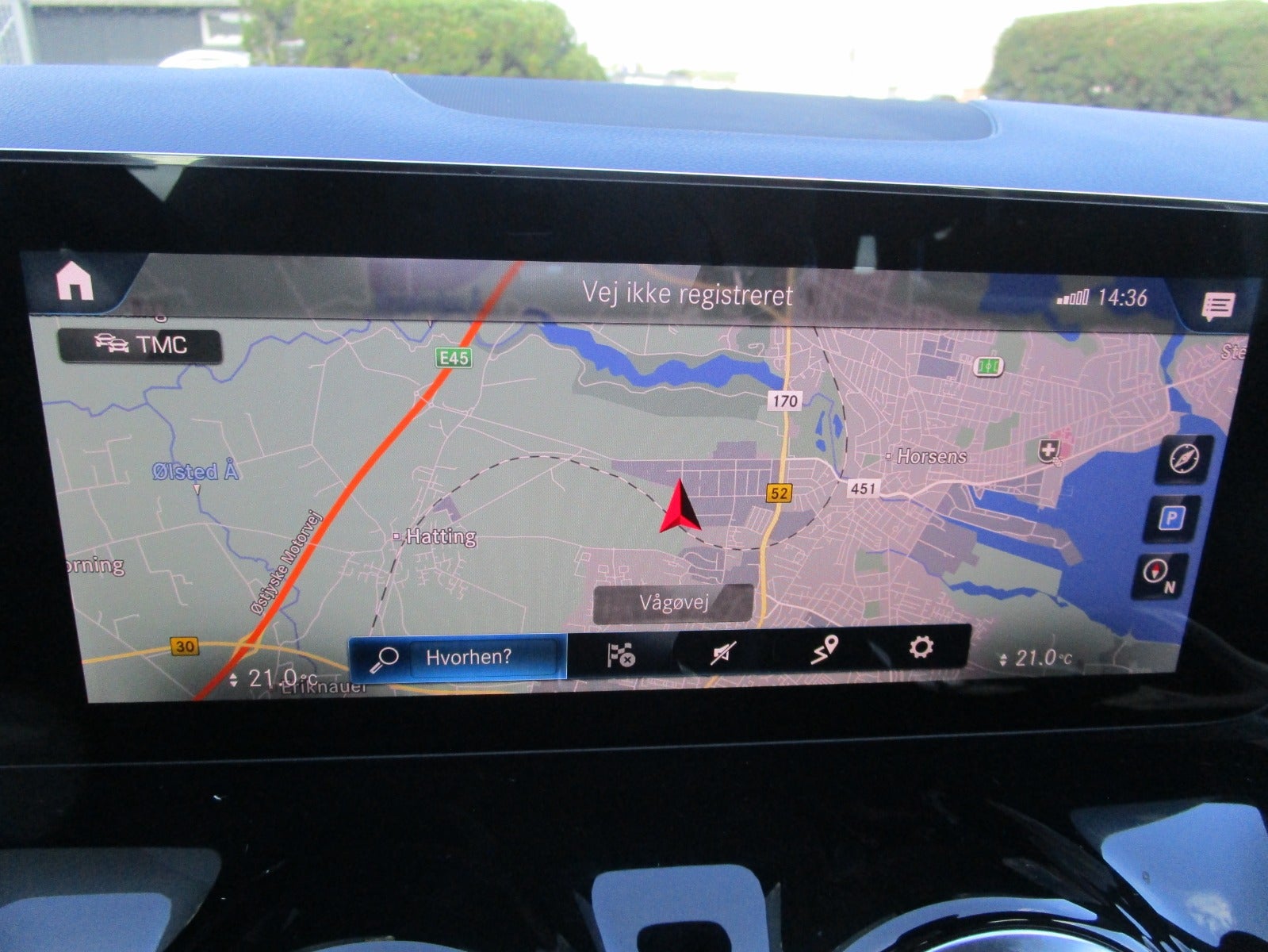 Fin Udstyret bil med bl.a: 8 Trins Automatgear, 2 zone klima, fuldaut. klima, aircondition, gear skift bag rat, ratgearskifte, Digital instrumentering, MBUX navigation IA/Me Meercedes, DAB radio, USB tilslutning, bluetooth, Dynamic select, touchtpad, infocenter, el åbning af bagklap, sort lofthimmel, multifunktionsrat i læder, dellæderindtræk, højdejust. forsæder, 17" alufælge, el-sammenklapbare sidespejle m/varme, led kørelys, fuld LED high performance lygter, aut lys, svingbart træk, Distance Assist DISTRONIC med adaptiv fartpilot, nøglefri tænding, automatisk start/stop, el-ruder, 7 airbags, 2023 model, reg .f.g.10/22, el p warch, regnsensor, parkeringssensor (bag), parkeringssensor (for), bakkamera, skiltegenkendelse, linie assist, aktiv brake assist mv.