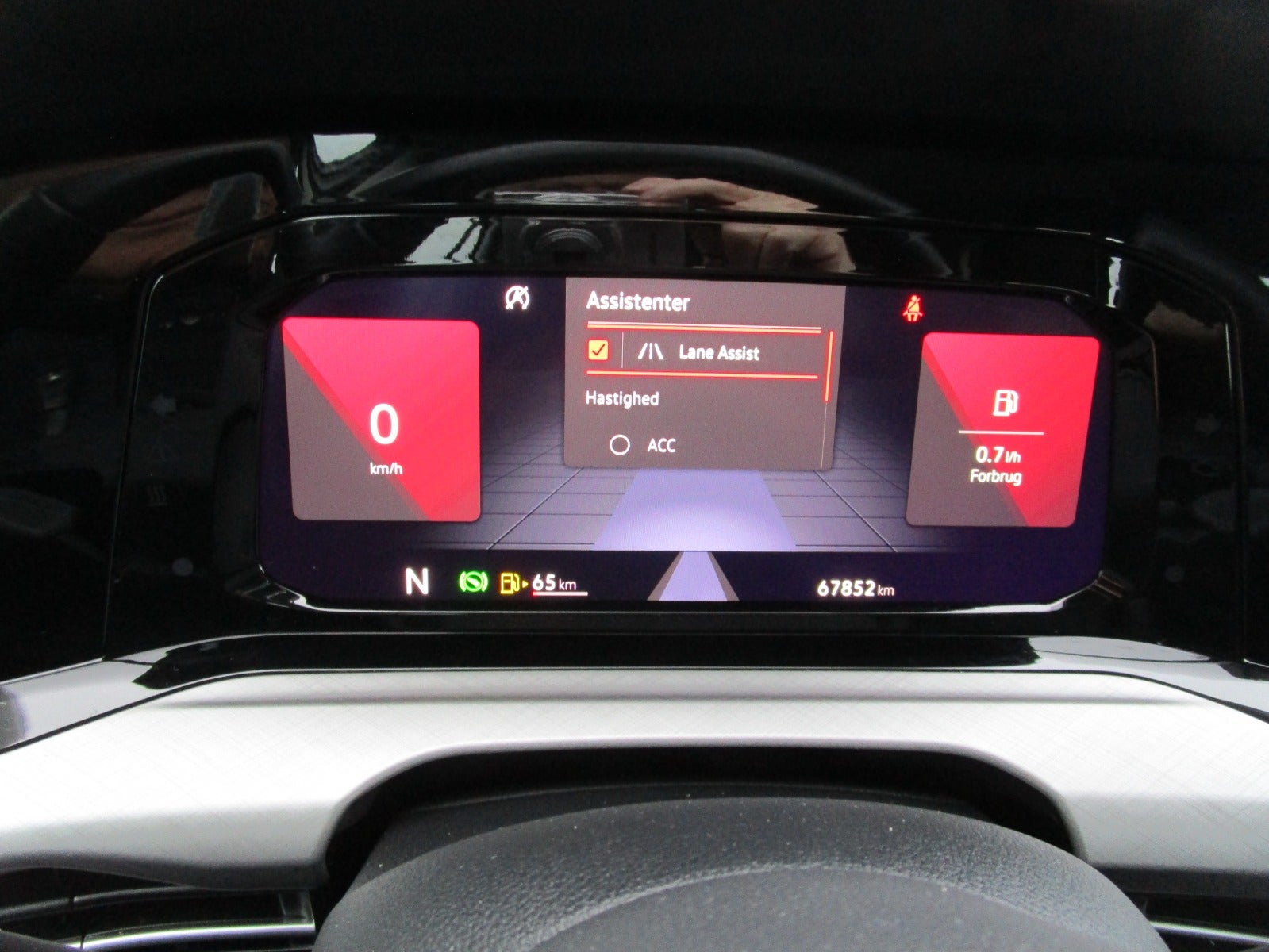 7 Trins Automatgear med mulighed for skifte bag rat, adaptiv fartpilot, parkeringssensor (for), parkeringssensor (bag), apple carplay, android auto, musikstreaming via bluetooth, usb-c tilslutning, digitalt cockpit, kørecomputer, multifunktionsrat i læder, højdejust. forsæder, justerbar lændestøtte, ambiente belysning, alufælge, el-sidespejle m/varme, led kørelys, led baglygter, nøglefri tænding, fjernb. centrallås, udv. temp. måler, sædevarme, varme i rat, automatisk start/stop, 6 airbags, esp, automatisk lys, vognbaneassistent, automatisk nødassistent.